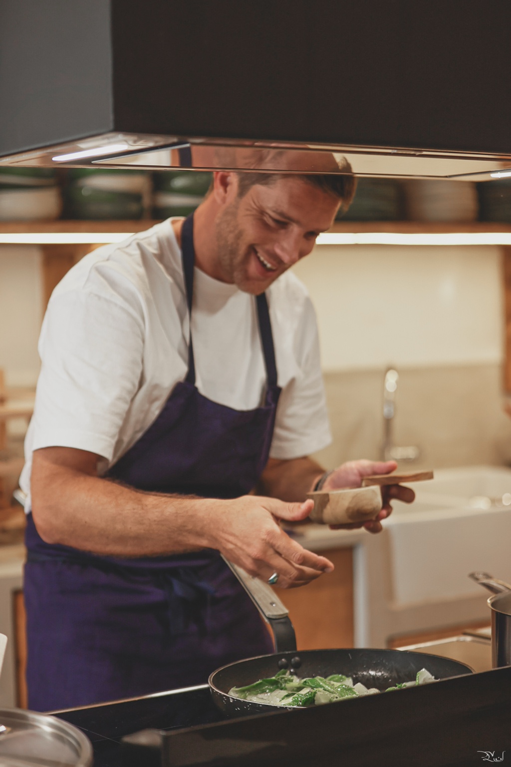 C’est cette culture de la table que je transmets aujourd’hui à travers mon travail : des moments simples et uniques, où je suis présent sans être envahissant, et où je mets tout mon cœur à créer une cuisine aussi belle que bonne, pensée pour le partage et l’évasion.